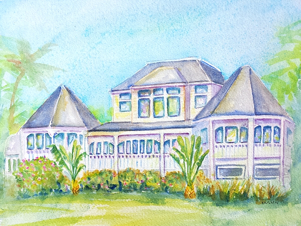 Experience the picturesque charm of Sanibel Island, Florida, with Carlin Blahnik's stunning watercolor, "Thistle Lodge Casa Ybel Resort.”